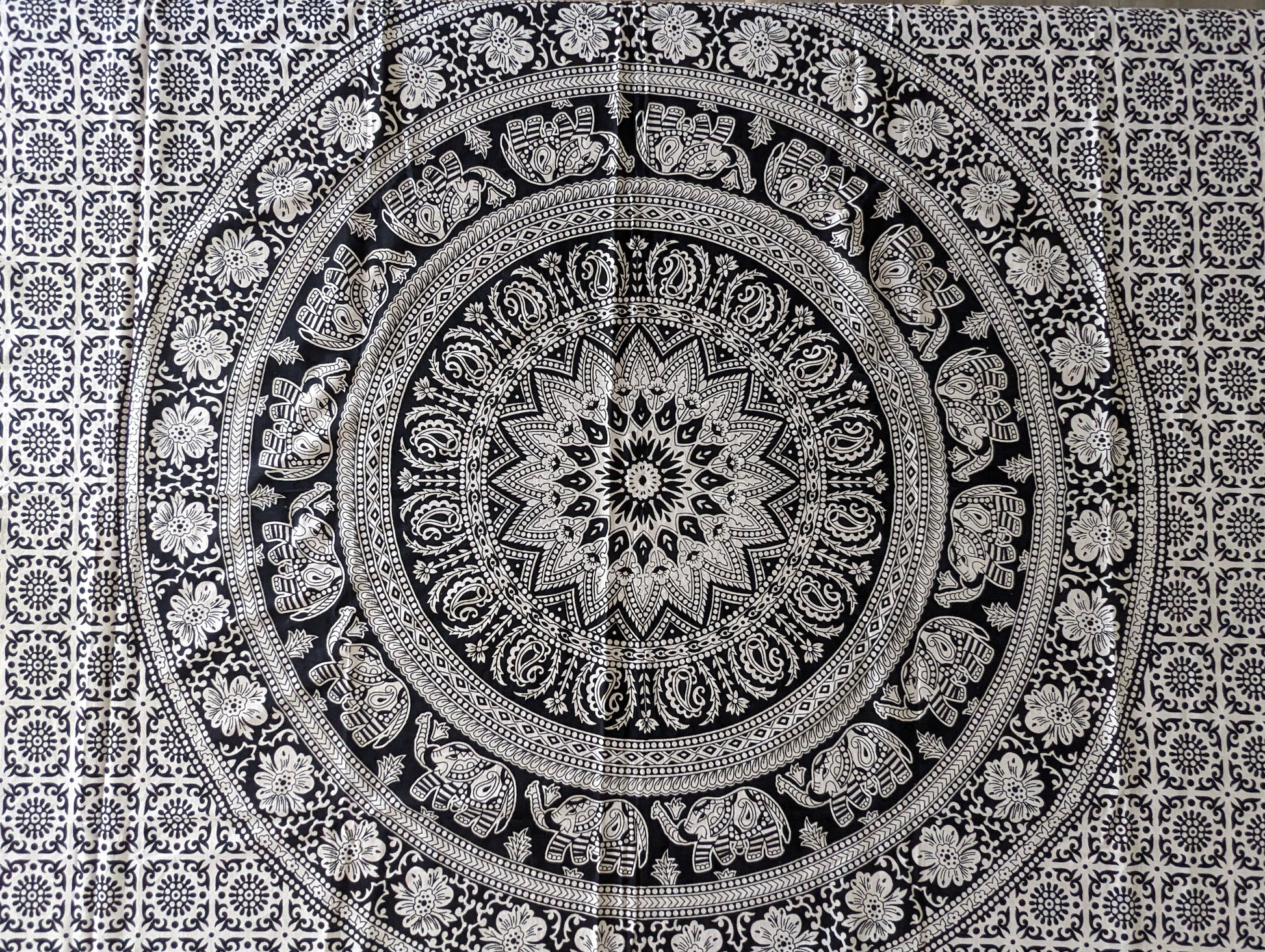 Cette Tapisserie 100% en Cotton provenant de l’Inde mesure approximativement 60’’x90’’ (Taille lit Simple).