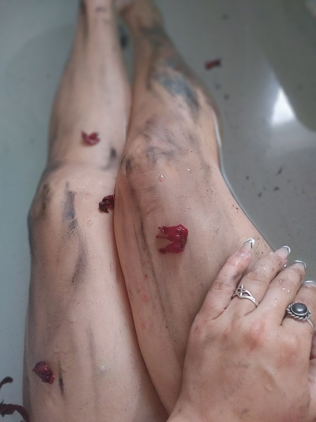 Utilisation : Déposer la fiole au complet dans le bain chaud. Entrer dans ses propriétés magiques. Récupérer le charbon sur les côtés du bain et vous badigeonnez la peau pour plus de purification.
